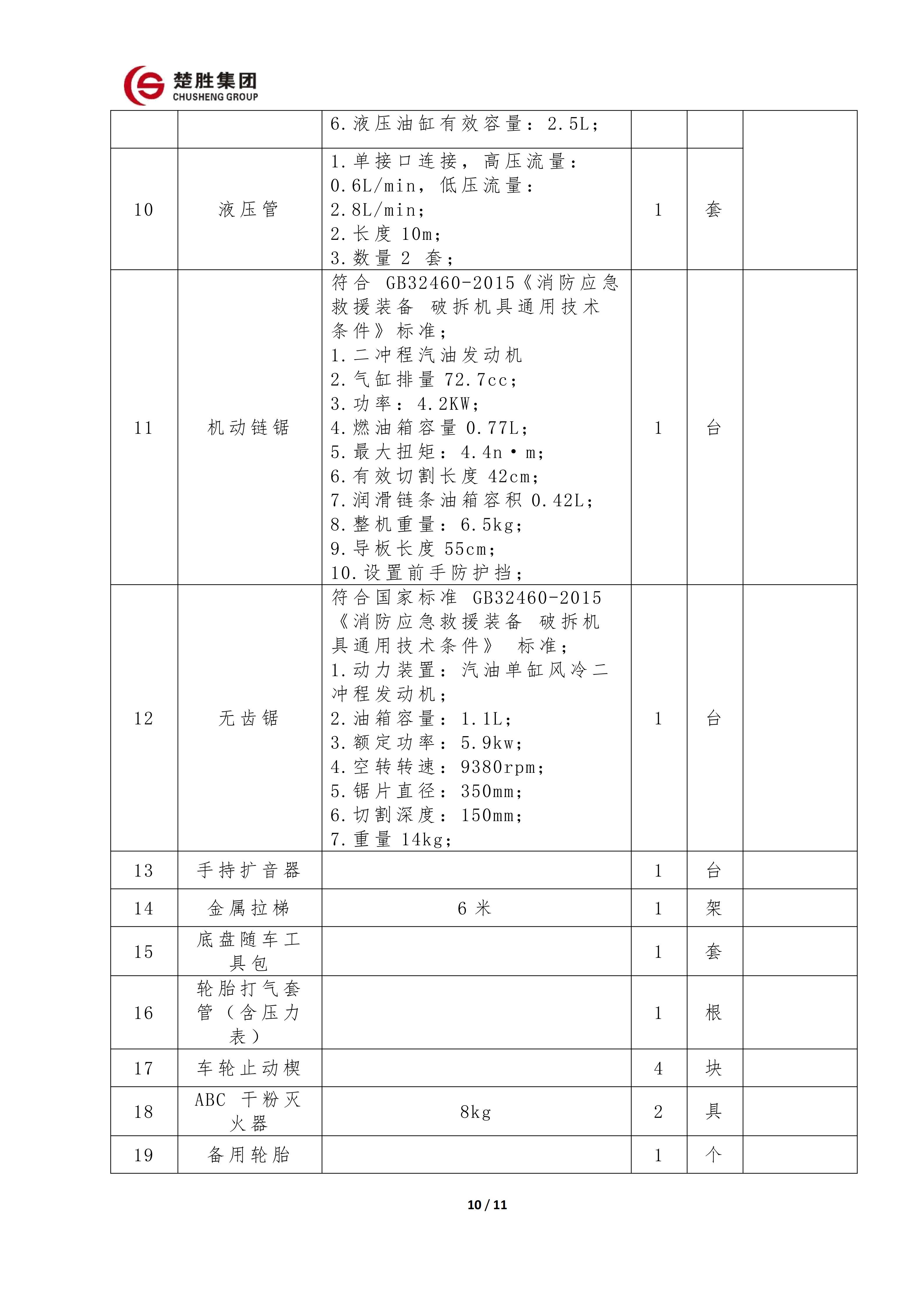 楚勝牌CSC5140TXFJY90/S6型搶險救援消防車